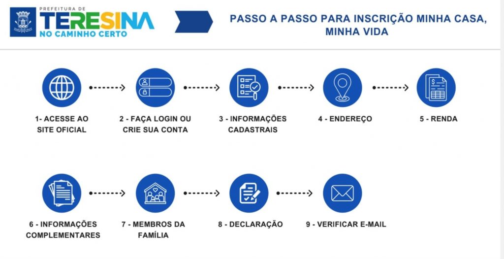 As inscrições para o programa Minha Casa, Minha Vida em Teresina seguem abertas até o próximo domingo, dia 08 de junho. De acordo com a Secretaria Municipal de Planejamento e Coordenação (Semplan), o processo é gratuito e deve ser realizado exclusivamente pela internet, através do site oficial: https://mcmv.teresina.pi.gov.br.