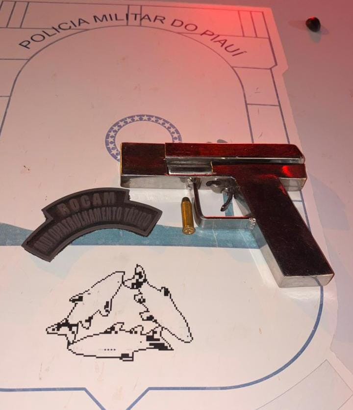 Durante a busca pessoal, os militares encontraram uma arma de fogo de fabricação caseira na cintura do adolescente. Diante da situação, ele foi apreendido e encaminhado à Central de Flagrantes para a adoção dos procedimentos legais cabíveis.