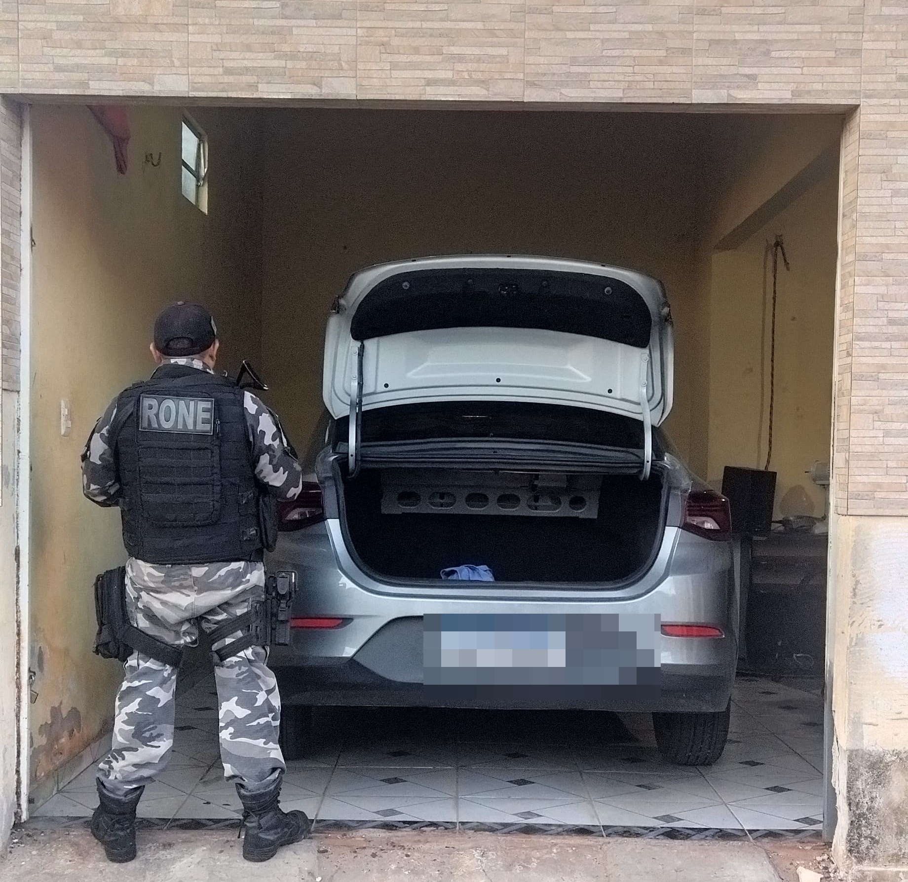 O veículo, um Chevrolet Onix Plus de cor cinza, estava sendo rastreado e o sinal apontava para o interior de uma residência localizada na Rua Agrimensor Boa Vista. Diante da situação de flagrante, a equipe policial realizou o adentramento no local, onde encontrou o carro e um celular Samsung de cor prata.