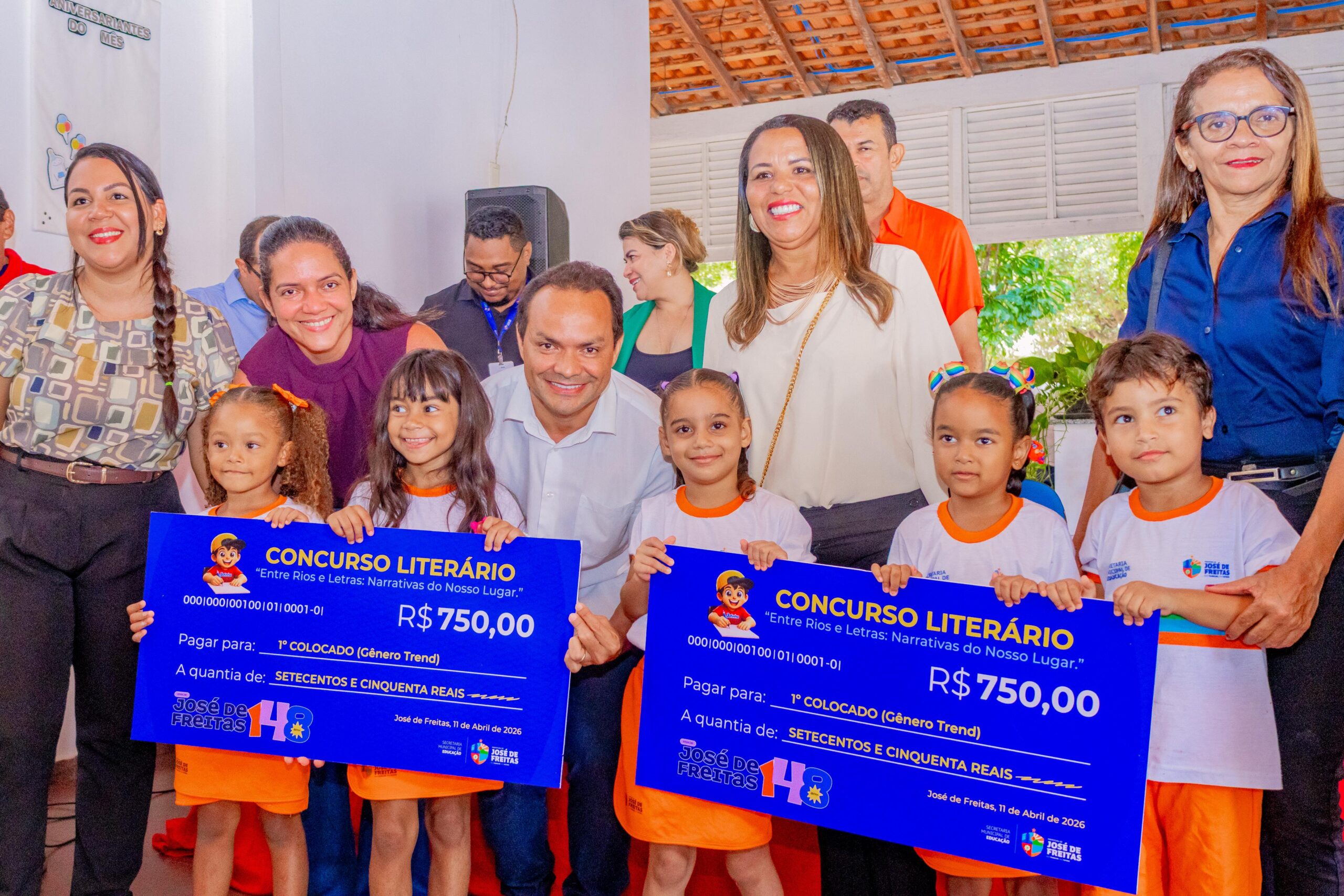 A Prefeitura Municipal de José de Freitas realizou, nesta sexta-feira (17), a premiação do Concurso Literário 2026, com o tema “Entre Rios e Letras: Narrativas do Nosso Lugar”, reunindo alunos, professores e familiares no Chalé da Prefeitura.