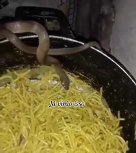 Na noite do último sábado (07), um jovem registrou uma cena inusitada na zona rural de Redenção do Gurgueia, no Sul do Piauí. Enquanto se preparava para o jantar, ele se deparou com uma cobra devorando macarrão em plena mesa.